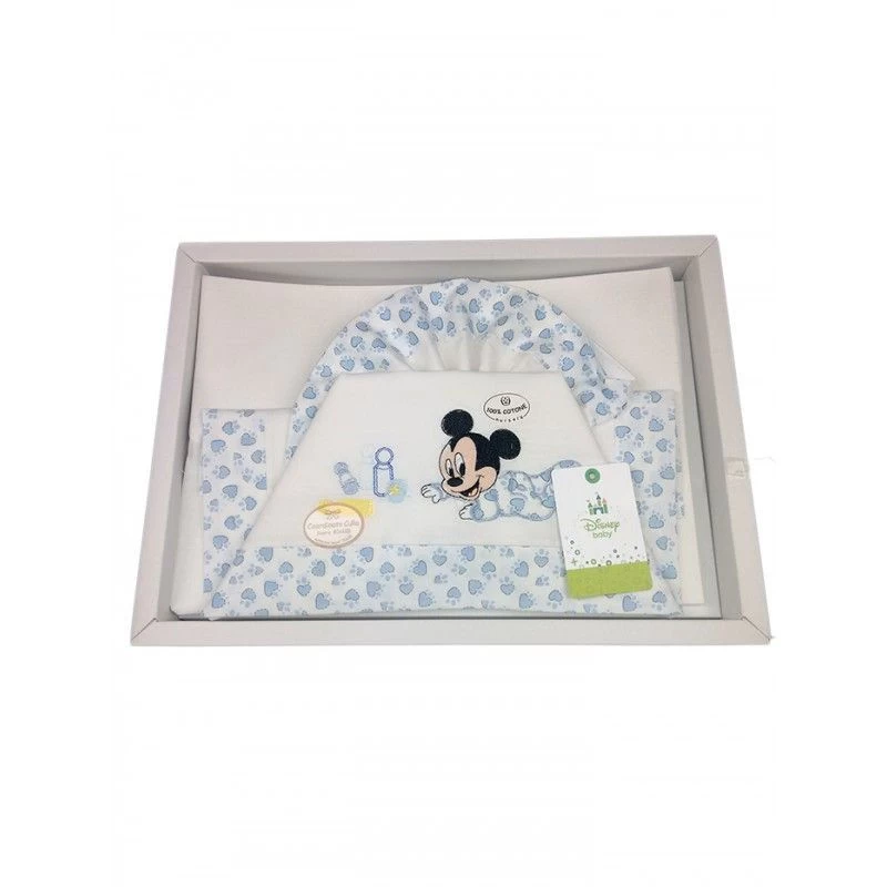 Completo Lettino Culla Bimbo Neonato Lenzuolo Stampa Mickey Disney Baby Bianco Cielo TU